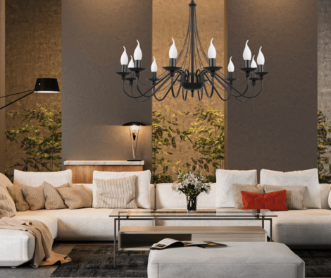 Powieszenie żyrandola świecznikowego w nowoczesnym wnętrzu, czyli w pomieszczeniu, w którym dominują linie proste, stonowane barwy i gładkie powierzchnie, wykonane z nowoczesnych materiałów, pozwala wydobyć wyjątkową estetykę aranżacji i podkreśla kontrast między stylami. W minimalistycznym otoczeniu żyrandol świecznikowy wiszący na łańcuchu staje się centralnym elementem, który przyciąga wzrok już od wejścia do salonu lub pokoju. Ciepłe, rozproszone światło żarówek świecowych i ciekawy kształt czarnego żyrandola świecznikowego lub żyrandola złotego, nadaje przestrzeni oryginalności i przytulności, łagodząc surowość betonowych, metalowych czy szklanych elementów.