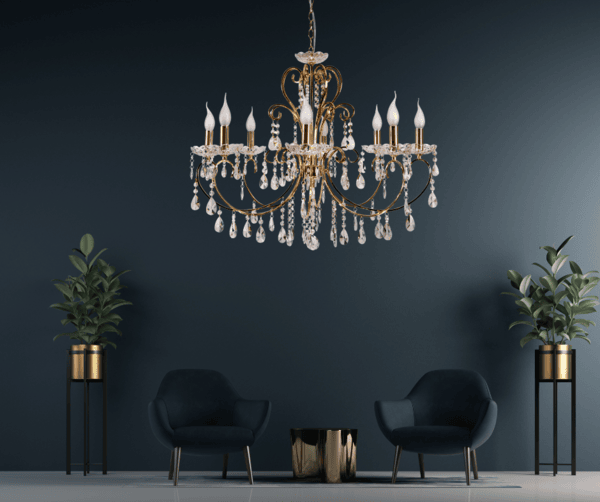 Klasyczny, elegancki żyrandol świecznikowy wyróżnia się wyjątkowym wyglądem. Konstrukcja lampy świecznikowej to zazwyczaj pionowy, solidny stelaż i przytwierdzone do niego pięknie wygięte ramiona, zakończone punktami światła - żarówkami imitującymi świece lub nowoczesnymi żarówkami LED. Kształt nowoczesnych lamp klasycznych nadal nawiązuje do dawnych wzorów oświetlenia i dawnych czasów, kiedy czarny lub złoty żyrandol świecznikowy był symbolem bogactwa, statusu społecznego i elegancji. Ta symbolika jest aktualna i dziś. Bogato zdobione złote żyrandole świecznikowe, nierzadko wykonane z cennego mosiądzu lub pomalowanego metalu, ozdobione połyskującymi kryształkami, nadają przestrzeni elegancji i wyrafinowanego, klasycznego charakteru.