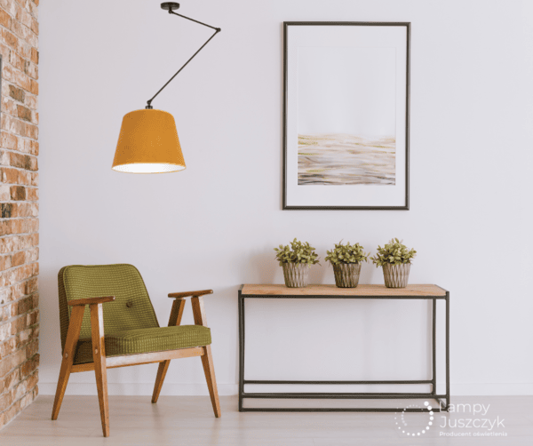 Jedno centralne oświetlenie w salonie, takie jak klasyczny żyrandol wiszący lub żyrandol sufitowy, może nie wystarczyć. W pokoju dziennym świetnie sprawdzą się komplety lamp – żyrandol i kinkiety do salonu, a także oświetlenie dodatkowe w postaci lampy stojącej i lampy na biurko lub regulowanej lampy sufitowej z abażurem do podświetlenia strefy wypoczynkowej, np. miejsca z fotelem. W aranżacji poniżej lampa regulowana Marika.