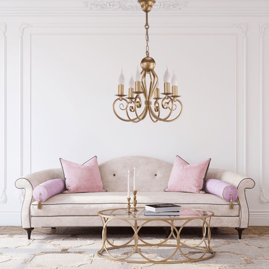 Kluczowym elementem każdego salonu jest oświetlenie główne, które nadaje charakter całemu pomieszczeniu. W tym miejscu wracamy do pytania o wielkość pomieszczenia. Jeśli nasz salon nie jest zbyt duży wówczas wybierzmy mniejszą lampę, na przykład mały żyrandol do salonu Kliwia - z abażurami lub żyrandol świecznikowy.
