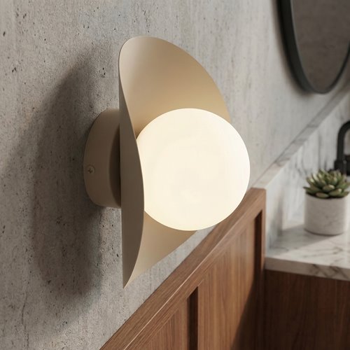 Kinkiet nowoczesny szklana kula Firo to oryginalna i bardzo modna lampa ścienna z białym kloszem i beżową podstawą. Jest to szklana lampa nowoczesna o minimalistycznej i eleganckiej formie. Beżowo-biały kinkiet nowoczesny kula pasuje do aranżacji nowoczesnych, jest to doskonała lampa ścienna w stylu loft, a także piękny kinkiet szklany do eleganckich salonów i pokoi. Designerski kinkiet biało-beżowy pasuje do pokoi hotelowych i do sypialni urządzonych w minimalistycznym stylu. Modny kształt tego oświetlenia wypływa z harmonii prostoty - połączenia mlecznobiałego szkła i prostej beżowej podstawy. Kinkiet biało-beżowy ma uniwersalną kolorystykę pasującą do różnych stylów aranżacji wnętrz.