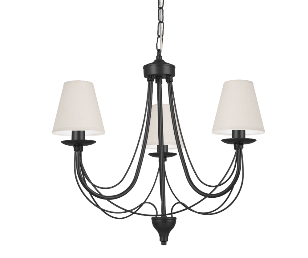 Żyrandol klasyczny potrójny z abażurkami Aura to model klasycznej lampy wiszącej, która doskonale sprawdzi się w wielu wnętrzach - od niewielkiego salonu, po jadalnię, sypialnię i stylowy przedpokój. Czarny żyrandol z trzema ramionami i abażurkami często wybierany jest jako elegancka lampa do małego salonu, jako żyrandol do kawiarni lub sali przyjęć - wówczas wieszany jest w serii takich samych żyrandoli w pomieszczeniu.