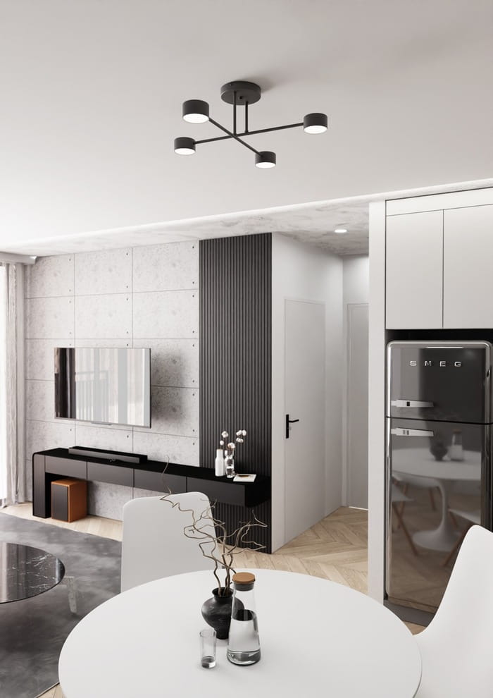 Lampa led sufitowa Haso to nowoczesny czarny żyrandol na sufit, z 4 spotami - punktami światła. Konstrukcja lampy led zachwyca prostotą formy i wyjątkową estetyką wykonania. Poziome ramiona czarnego żyrandola zakończone są spotami i wraz z pionowym stelażem tworzą geometryczną, elegancką i spójną całość. Haso to oświetlenie sufitowe led zaprojektowane w minimalistycznym stylu. Czarna lampa z 4 spotami doskonale wpisze się w wystrój wnętrza w stylu industrialnym, nowoczesnym lub skandynawskim. Jest to również nowoczesna czarna lampa loft, której design będzie uzupełnieniem wystroju w stylu loft. Konstrukcja żyrandola loft ze spotami jest wykonana z metalu pomalowanego proszkowo. Gładka powierzchnia stelaża i czarne spoty znakomicie pasują do wnętrz nowoczesnych i minimalistycznych. Lampa ledowa, sufitowa Haso jest dostępna w kolorze czarnym lub białym, występuje jako nowoczesna lampa led na 2,4 lub 6 źródeł światła, jest to oprawa oświetleniowa w 100% produkcji polskiej.