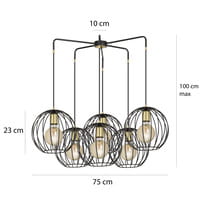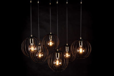 Duża i obszerna lampa loftowa o regulowanej wysokości. Sześć punktów światła w kloszach o metalowej konstrukcji z drutu, tworzy niepowtarzalny klimat surowości i designu. Albi doskonale nadaje się do dużych pomieszczeń i salonów urządzonych w stylu industrialnym i loftowym.