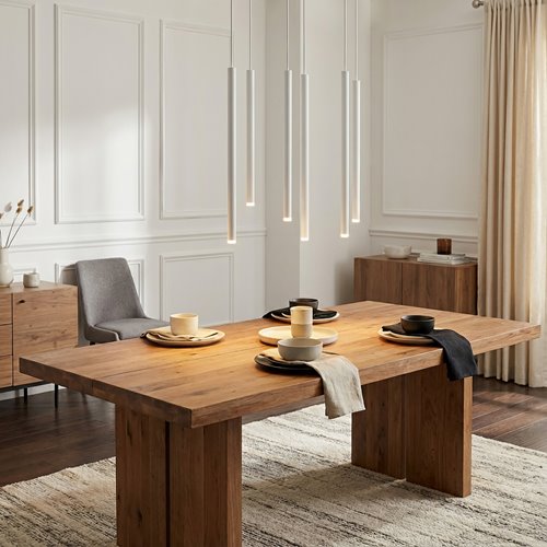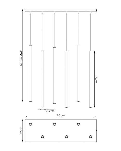 Podłużna lampa sopel Siter to oświetlenie wiszące z 6 rureczkami ledowymi w kolorze białym. Jedna rureczka to jeden punkt światła spot. Wiszący spot wyposażony jest w regulację wysokości. Designerska a zarazem minimalistyczna forma oświetlenia spot sprawdzi się w każdym pomieszczeniu i w różnych stylach wnętrz. Lampa sopel Siter wspaniale prezentuje się w nowoczesnym salonie, a także w pomieszczeniach publicznych - designerskich biurach i kawiarniach. Lampy sople dają skoncentrowane światło, dlatego często służą jako oświetlenie w jadalni lub kuchni nad wyspą kuchenną.