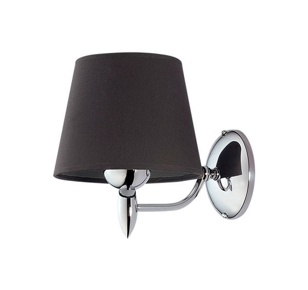 Kinkiet srebrno - chromowy z czarnym abażurem, elegancki. Doskonałe uzupełnienie lamp z serii Galaksy w stylu nowojorskim i glamour.