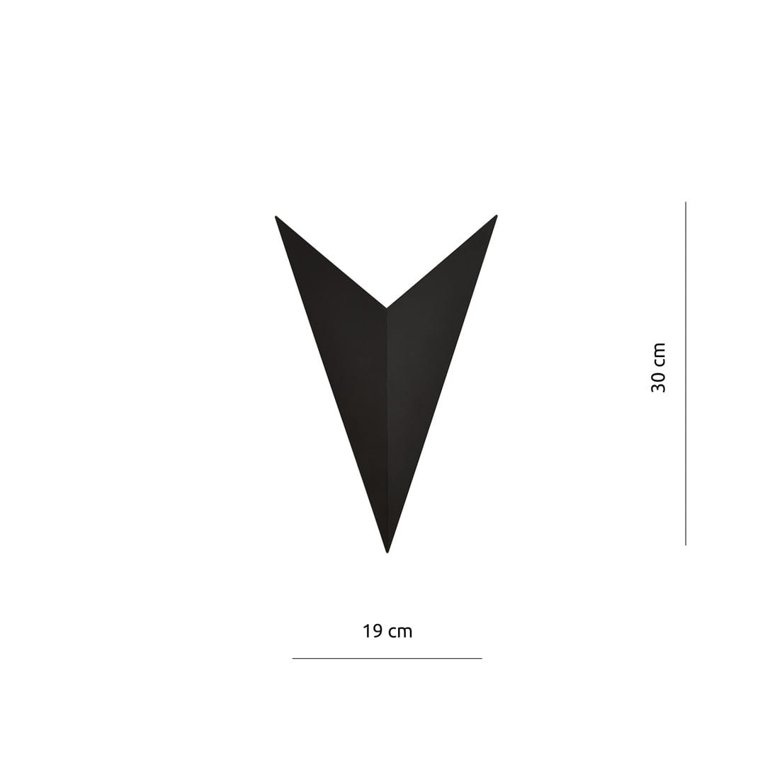 Czarny kinkiet loft metalowy NORM to designerska lampa na ścianę. Formę kinkietu loftowego tworzy matowo-czarna blacha wygięta w trójkąt, za którą ukryty jest punkt światła. Kształt kinkietu pozwala na interesujące rozproszenie światła do góry. Metalowa osłona kinkietu przypomina nieco skrzydła jaskółki lub papierowe samoloty, jakimi bawiliśmy się w dzieciństwie. Jest to forma dynamiczna i intrygująca we wnętrzu. Kinkiet loft NORM to dekoracyjna lampa ścienna, która doda pomieszczeniu wyjątkowego charakteru. Lampa loft doświetli ścianę w wybranym punkcie pomieszczenia, doskonale wkomponuje się i dopasuje do czarnego wystroju - czarnych mebli lub czarnych detali we wnętrzu. NORM to doskonały czarny kinkiet loft do pokoju hotelowego, a także nowoczesna lampa na ścianę do salonu urządzonego w stylu loft i czarna lampa do czarnej sypialni. Kinkiet metalowy o geometrycznej formie sprawdzi się w oświetleniu schodów, przedpokoju i korytarza. Metalowa lampa ścienna pasuje do wielu wystrojów wnętrz - od klasycznych po nowoczesne i designerskie aranżacje.
