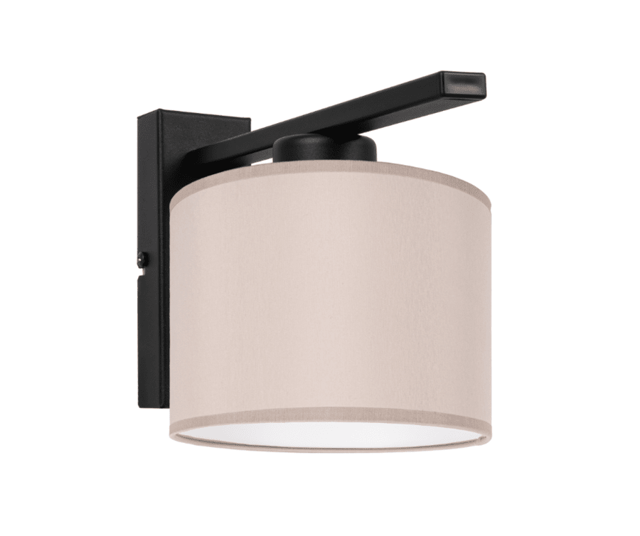 Czarny kinkiet z beżowo-szarym abażurem Erik to propozycja estetycznego oświetlenia na ścianę do pomieszczeń nowoczesnych. Lampa ścienna na jedną żarówkę doskonale sprawdzi się jako nowoczesny kinkiet w przedpokoju, jako lampa ścienna z abażurem w sypialni, uzupełni centralne oświetlenie z abażurami w salonie. Kinkiet Erik składa się z prostego metalowego stelaża montowanego do ściany i dość dużego beżowo-szarego abażuru w kształcie walca. Abażur jest wykonany z eleganckiej tkaniny, która przepuszcza światło, a jednocześnie delikatnie je tłumi, co sprzyja budowaniu domowego klimatu w pomieszczeniu. Jest to bardzo proporcjonalna i ciekawa w formie nowoczesna lampa na ścianę z pięknym abażurem. Jako producent oświetlenia i sklep fabryczny z lampami doskonale wiemy, jak ważne są kinkiety we wnętrzach. Te niewielkie lampy ścienne doświetlają miejsca, których nie jesteśmy w stanie odpowiednio oświetlić żyrandolem czy lampą powieszoną centralnie. Kinkiet z abażurem Erik to nowość w naszej ofercie kinkietów do salonu i pokoju.