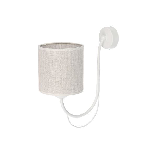 Biały kinkiet ścienny z abażurem to propozycja do nowoczesnych salonów i pokoi. Oprawa ma klasyczną formę, wyróżnia się nowoczesnym charakterem stelaża, który pomalowany jest na kolor biały. Dodany do lampy beżowo-lniany abażurek o ciekawym kształcie sprawia, że to idealny kinkiet pojedynczy do salonów i pokoi w stylu prowansalskim i shabby chic. Lampa przyścienna Kaskar jest doskonałym uzupełnieniem oświetlenia wiszącego z tej serii.