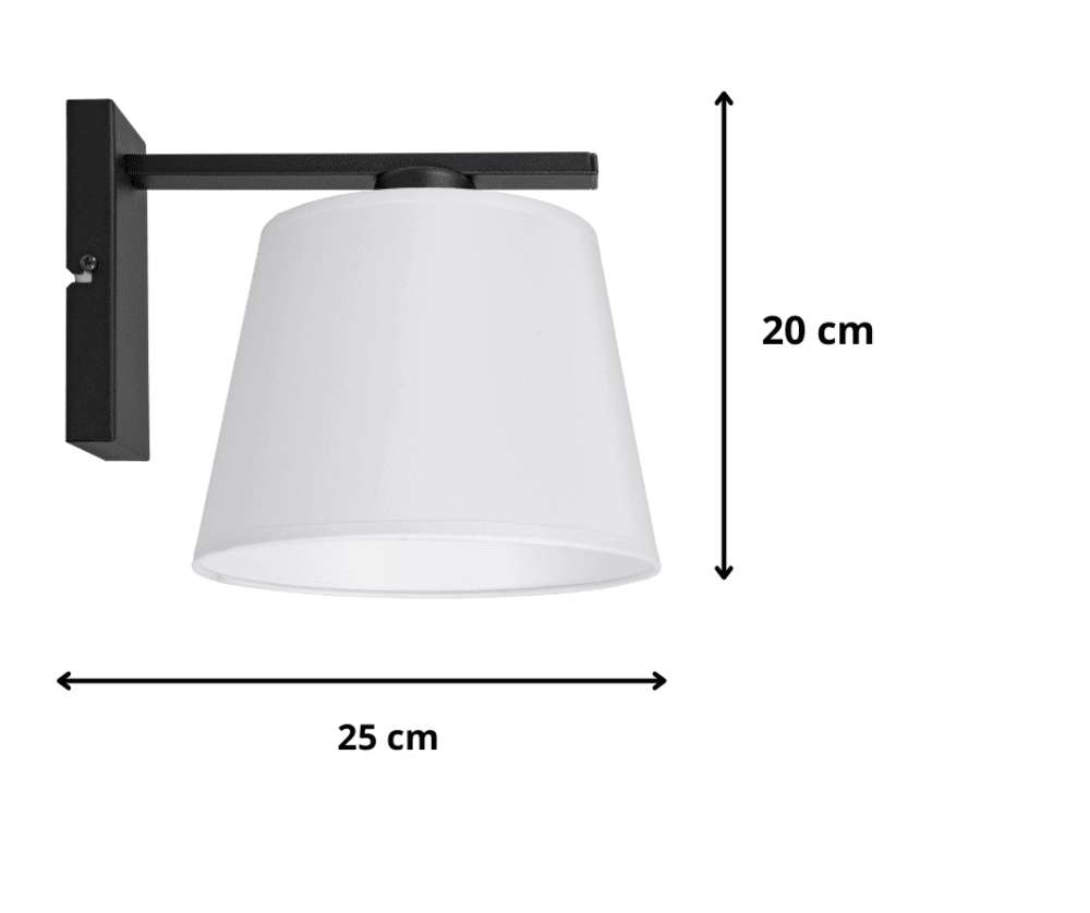 Czarny kinkiet z białym abażurem Liko to propozycja estetycznego oświetlenia na ścianę do pomieszczeń nowoczesnych. Lampa ścienna na jedną żarówkę doskonale sprawdzi się jako nowoczesny kinkiet w przedpokoju, jako lampa ścienna z abażurem w sypialni, uzupełni centralne oświetlenie z abażurami w salonie. Kinkiet Liko składa się z prostego metalowego stelaża montowanego do ściany i dość dużego białego abażuru. Abażur jest wykonany z eleganckiej tkaniny, która przepuszcza światło, a jednocześnie delikatnie je tłumi, co sprzyja budowaniu domowego klimatu w pomieszczeniu. Jest to bardzo proporcjonalna i ciekawa w formie nowoczesna lampa na ścianę z pięknym abażurem. Jako producent oświetlenia i sklep fabryczny z lampami doskonale wiemy, jak ważne są kinkiety we wnętrzach. Te niewielkie lampy ścienne doświetlają miejsca, których nie jesteśmy w stanie odpowiednio oświetlić żyrandolem czy lampą powieszoną centralnie. Kinkiet z abażurem Liko to nowość w naszej ofercie kinkietów do salonu i pokoju.