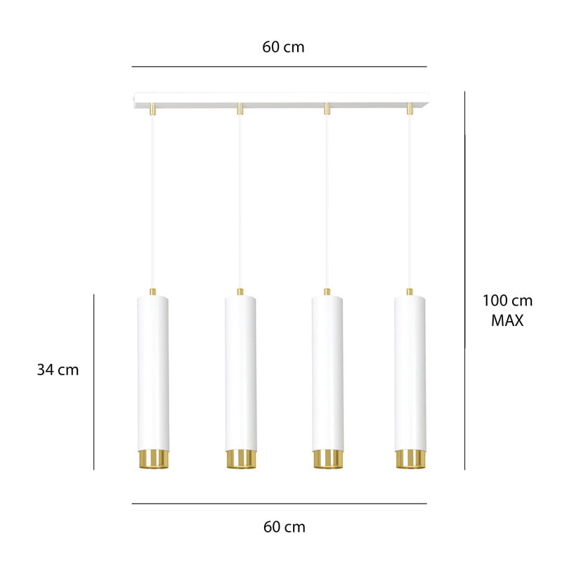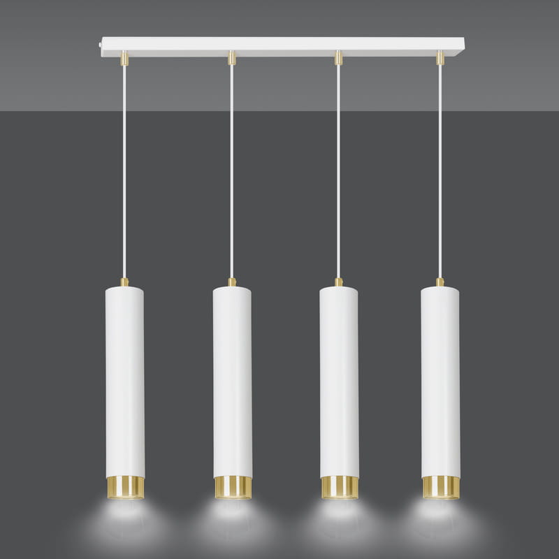 Kobo to lampa wisząca z 4 tubami ledowymi w kolorze biało - złotym. Ten wiszący spot posiada regulację wysokości. Jego designerska i minimalistyczna forma sprawdza się w każdym pomieszczeniu i w różnych stylach wnętrz. Tuby daję skoncentrowane światło, dlatego często służą jako oświetlenie nad stołem, lub wyspą kuchenną.