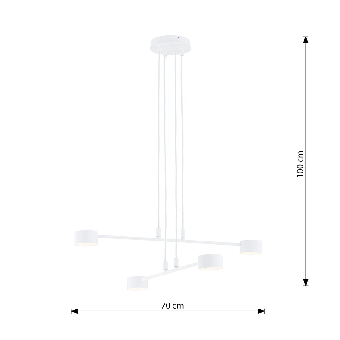 Lampa led sufitowa Modes to nowoczesny biały żyrandol z czterema spotami - punktami światła. Konstrukcja lampy led zachwyca prostotą formy i wyjątkową estetyką wykonania. Poziome ramiona białego żyrandola zakończone są spotami i wraz z pionowym stelażem tworzą geometryczną, elegancką i spójną całość. Modes to oświetlenie sufitowe led zaprojektowane w minimalistycznym stylu. Biała lampa z 4 spotami doskonale wpisze się w wystrój wnętrza w stylu industrialnym, nowoczesnym lub skandynawskim. Jest to również nowoczesna biała lampa loft, której design będzie uzupełnieniem wystroju w stylu loft. Konstrukcja żyrandola loft ze spotami jest wykonana z metalu pomalowanego proszkowo. Gładka powierzchnia stelaża i białe spoty znakomicie pasują do wnętrz nowoczesnych i minimalistycznych. Lampa led sufitowa Modes jest dostępna w kolorze czarnym lub białym, występuje jako nowoczesna lampa led na 4 lub 6 źródeł światła, jest to oprawa oświetleniowa w 100% produkcji polskiej.