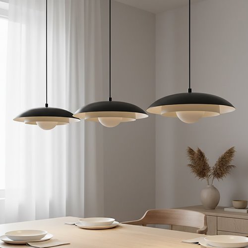 Lampa wisząca Kini to idealne oświetlenie do wnętrz urządzonych w stylu skandynawskim i minimalistycznym. Oprawa oświetleniowa w kolorze bieli i czerni doda wnętrzu wyjątkowego charakteru. Do kolorystyki czerni i bieli łatwo dopasować inne dodatki w podobnej tonacji barw. Kolorowa lampa szklana doskonale prezentuje się, gdy jest zawieszona w komplecie, np. jako lampa potrójna i lampa pojedyncza.