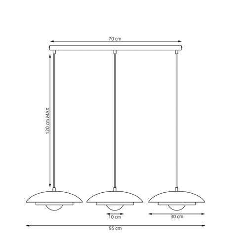 Kini to czarna lampa wisząca z serii designerskich lamp do pokoju nad stół. Jest to zwis metalowo-szklany, w którym zachwyt budzi oryginalna forma oświetlenia. Do metalowego stelaża podwieszone są na przewodach trzy punkty światła ukryte w szklanych kloszach. Design nowoczesnej lampy opiera się na pomyśle połączenia geometrycznych kształtów i wyrazistych kolorów i bieli szklanego klosza. Półokrągły abażur osłania szklany klosz. Widzimy tylko połowę kuli, co daje interesujący efekt ozdobny i oświetleniowy. Lampa wisząca trzypunktowa ze szklanymi kloszami doskonale nadaje się do oświetlenia nowoczesnych salonów i jadalni. Jest to oświetlenie do kuchni i piękna szklana lampa nad stół, a także oryginalna lampa do designerskich pomieszczeń biznesowych. Zwis potrójny szklano-metalowy w kolorze bieli i czerni ozdobi wnętrza, w których zależy nam na klimacie nowoczesności.