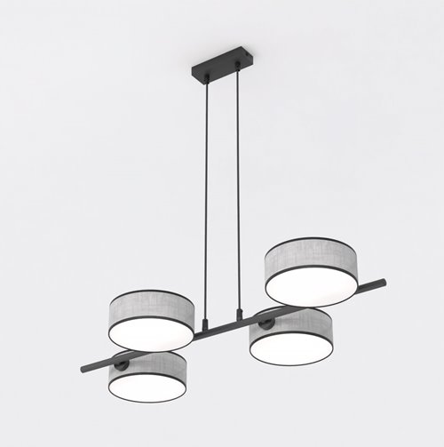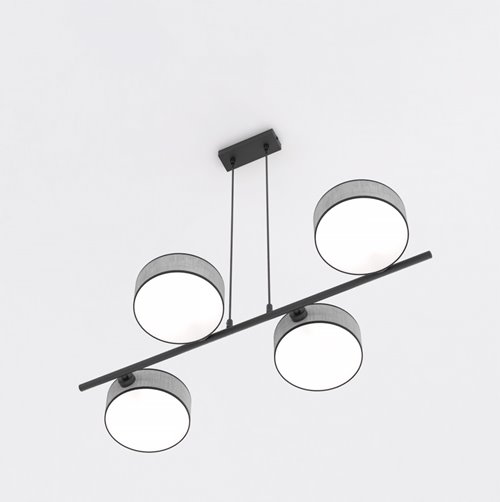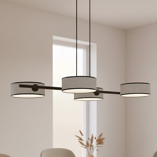 Lampa wisząca Drim to nowoczesna lampa wisząca nad stół, stworzona z myślą o eleganckich i funkcjonalnych wnętrzach. Czarna lampa z 4 punktami światła i 4 abażurami zawieszonymi na metalowej belce doskonale prezentuje się w salonie, jadalni i kuchni, zwłaszcza nad stołem lub wyspą. Regulowana wysokość zawieszenia lampy pozwala idealnie dopasować oświetlenie do aranżacji, a mleczne blendy pod abażurami zapewniają równomierne rozproszenie światła. Jeśli szukasz lampy wiszącej do salonu, czarnej lampy nad stół lub nowoczesnej lampy do jadalni, model Drim będzie świetnym połączeniem modnego designu i codziennej wygody.