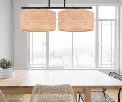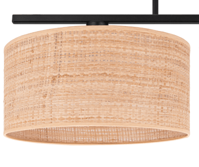 Podłużna lampa wyposażona jest w dwa duże abażury w kolorze rattanu. W oprawie Werika zastosowano klosze w kształcie walca, o strukturze i w kolorze naturalnego rattanu. Lampa abażurowa Werika jest funkcjonalną lampą sufitową, która zachwyca eleganckim designem. Duże abażury dołączone do metalowego stelaża, zapewniają doskonałe rozprowadzenie światła. Rattanowe pokrycie abażurów pasuje do wnętrz, w których zależy nam na naturalnym i przytulnym klimacie. Lampa w takiej kolorystyce doskonale wpisuje się w styl wystroju boho. Wybierając lampę z abażurami z rattanu warto dopasować inne tekstylne dodatki i w ten sposób zachować spójność dekoracji pomieszczenia. Lampa sufitowa Werika jest dostępna także z białym stelażem. Podłużna Lampa na sufit z abażurami świetnie sprawdzi się w niewysokich salonach i pokojach i wszędzie tam, gdzie jest zbyt mało przestrzeni na wiszący żyrandol klasyczny czy lampę wiszącą. Cała oprawa produkowana jest w naszej firmie.