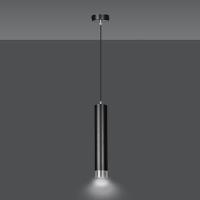 Lampa tuba wisząca czarno srebrna Kobo 5643/1