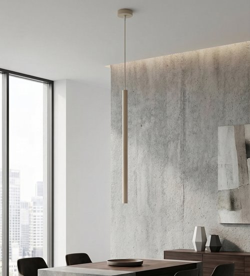 Pojedyncza lampa wisząca Siter to designerski spot wiszący, oryginalna beżowa rureczka. Rodzina lamp spotów Siter to oświetlenie minimalistyczne, a jednocześnie bardzo efektowne i wyraziste. Lampa beżowa sopel doda wnętrzu wyjątkowo nowoczesnego charakteru, będzie dekoracyjnym akcentem na tle nowoczesnych mebli i jasnych ścian. Pojedynczy beżowy spot Siter doskonale wpisze się w wystrój wielu wnętrz, od aranżacji nowoczesnych, po glamour i klasyczne. Pojedynczy spot Siter daje skoncentrowane światło, dlatego często wybierany jest jako designerskie oświetlenie nad stół, lampa nad blat kuchenny lub jako spot nad wyspę kuchenną. Lampa wyposażona jest w regulację wysokości, dzięki czemu można ją dopasować do wysokości pomieszczenia.