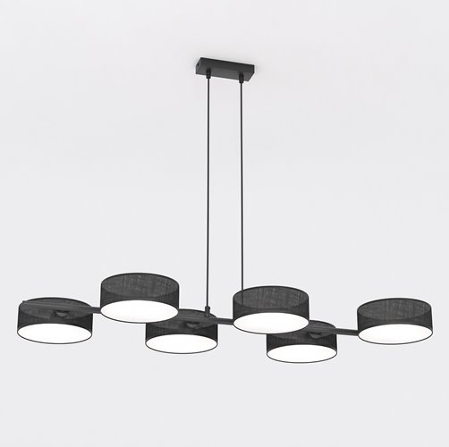 Lampa wisząca Drim to nowoczesna lampa wisząca nad stół, stworzona z myślą o eleganckich i funkcjonalnych wnętrzach. Czarna lampa z 6 punktami światła i 6 abażurami zawieszonymi na metalowej belce doskonale prezentuje się w salonie, jadalni i kuchni, zwłaszcza nad stołem lub wyspą. Regulowana wysokość zawieszenia pozwala dopasować oświetlenie do indywidualnej aranżacji, a mleczne blendy pod abażurami zapewniają równomierne rozproszenie światła. Jeśli szukasz lampy wiszącej do salonu, czarnej lampy nad stół lub nowoczesnej lampy do jadalni, model Drim będzie świetnym połączeniem modnego designu i codziennej wygody.