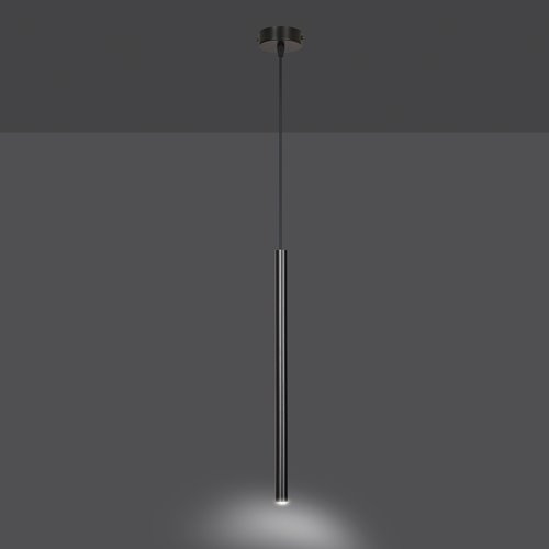 Pojedyncza lampa wisząca Siter to designerski spot wiszący, oryginalna czarna rureczka. Rodzina lamp spotów Siter to oświetlenie minimalistyczne, a jednocześnie bardzo efektowne i wyraziste. Lampa czarna sopel doda wnętrzu wyjątkowo nowoczesnego charakteru, będzie dekoracyjnym akcentem na tle nowoczesnych mebli i jasnych ścian. Pojedynczy czarny spot Siter doskonale wpisze się w wystrój wielu wnętrz, od aranżacji nowoczesnych, po glamour i klasyczne. Pojedynczy spot Siter daje skoncentrowane światło, dlatego często wybierany jest jako designerskie oświetlenie nad stół, lampa nad blat kuchenny lub jako spot nad wyspę kuchenną. Lampa wyposażona jest w regulację wysokości, dzięki czemu można ją dopasować do wysokości pomieszczenia.