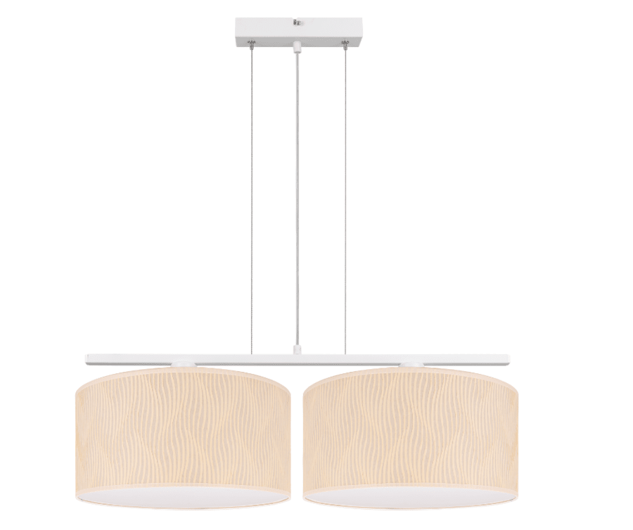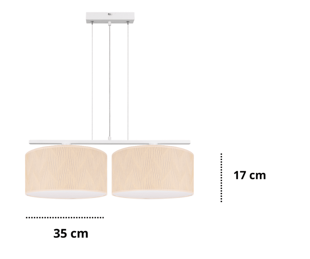 Lampa wisząca abażurowa Werika to odpowiednia propozycja podwójnego oświetlenia do niedużych, nowoczesnych salonów i jasnych jadalni. Elegancka lampa wisząca wyposażona jest w dwa materiałowe abażury w kształcie walca, które podwieszone są do czarnego, metalowego stelaża. Kolorystyka abażurów utrzymana jest w tonacji kremowej, tkaninę kloszy ozdabiają delikatne prążki, które dodatkowo przepuszczają i rozpraszają światło. Jeśli umieścicie tę lampę jako oświetlenie nad blatem czy stołem w jadalni, nie musicie obawiać się rażącego światła żarówek - abażury są od spodu osłonięte mleczną pleksą, która delikatnie rozprasza światło. Lampa podwójna Werika dostępna jest w wersji z czarnym stelażem, z innymi abażurami, a także jako lampa z trzema abażurami. Cała oprawa oświetleniowa jest produkcji Lampy-Juszczyk.