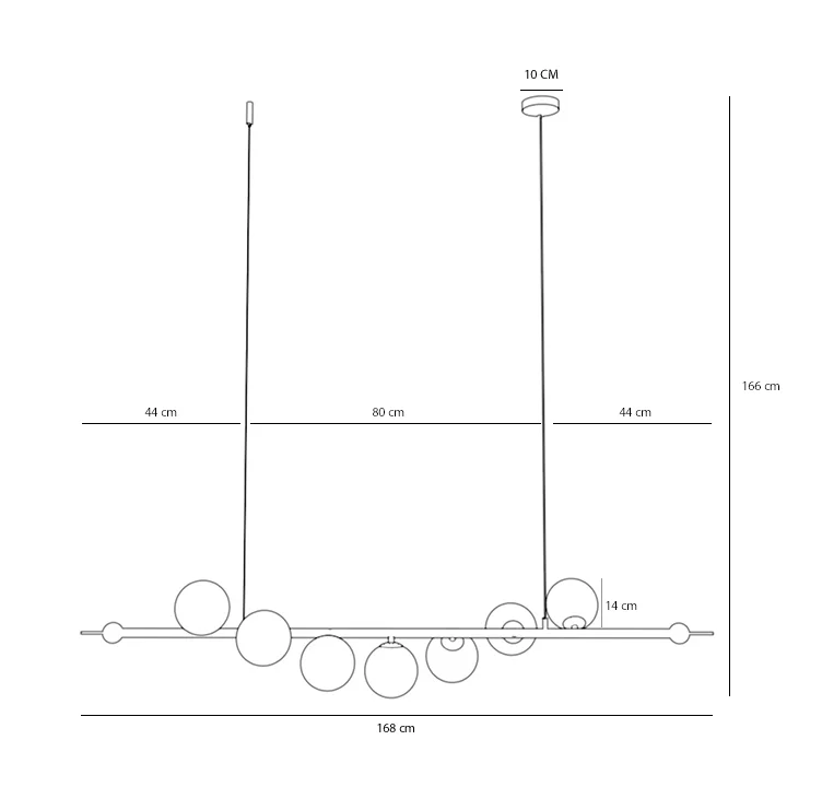 Lampa wisząca ze szklanymi kulami Wiva to doskonała propozycja do salonów, dużych jadalni i obszernych, okazałych pomieszczeń. Jest ona w kolorze złotym, a wykonana jest ze szlachetnego materiału jakim jest polerowany mosiądz. Oprawa oświetleniowa składa się z siedmiu kloszy-kulek o mlecznobiałej barwie, które równomiernie rozpraszają światło żarówek. Kulki są rozmieszczone wokół osi lampy i sprawiają wrażenie goniących się w spirali korkociągu. Eleganckie szklane kule to atut tego typu lampy - światło ukryte w szklanych kloszach nie jest zbyt jaskrawe i nie razi wrażliwych oczu. Stelaż lampy z kulami jest konstrukcją poziomą, wykonaną z mosiądzu. Przewód lampy z kulami Wiva możemy samodzielnie skrócić, co umożliwi powieszenie jej w salonach dość wysokich, ale też tych nieco niższych. Ta nowoczesna lampa wisząca ze szklanymi kulami fantastycznie spełni swoją rolę użytkową, ale również dekoracyjną. Będzie pięknym uzupełnieniem stylu nowoczesnego. Szerokość lampy, która wynosi 168 cm i jej regulowana wysokość sprawiają, że lampa często oświetla jadalnie i piękne salony.