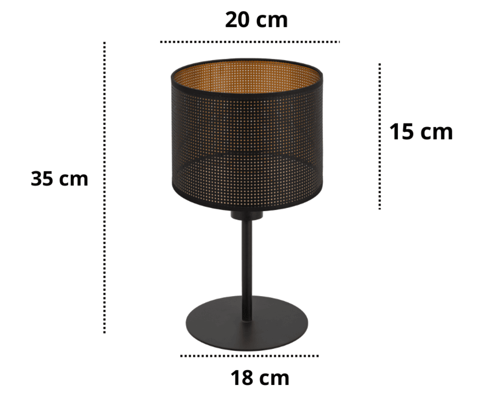 Lampka stołowa Marta sprawdzi się w nowoczesnych pomieszczeniach, idealnie doświetlając miejsce na naszej szafce lub komodzie. Posiada czarną podstawę i czarno-złoty abażur z dziurkami, o ciekawym kształcie i formie. Idealnie wpisuje się w styl pokoi urządzonych nowocześnie i loftowo.