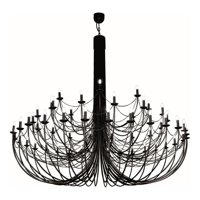 O wyjątkowości tej dużej lampy decyduje ilość punktów światła, sposób rozmieszczenia ramion na stelażu żyrandola oraz ogromny rozmiar lampy wiszącej Rodir. Żyrandol wyposażony jest w 56 ramion, tak duża liczba punktów światła zapewni równomierne rozprowadzenie światła na dużej przestrzeni.