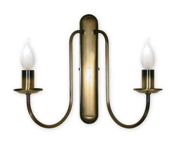 Klasyczny patynowany kinkiet na ścianę. Posiada dwa ramionka wykonane z ozdobnej, ryflowanej rurki. Jest doskonałą propozycją oświetlenia do salonów i pokoi, urządzonych w stylu tradycyjnym i klasycznym. Prosta, stylowa i elegancka forma oświetlenia.