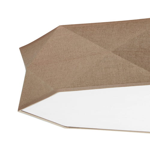 Plafon beżowo - szary o średnicy 78 cm. Uniwersalna propozycja do oświetlenia niewysokich pokoi i kuchni. Od dołu zaślepiony mleczną plexą, która równomiernie rozprasza światło.