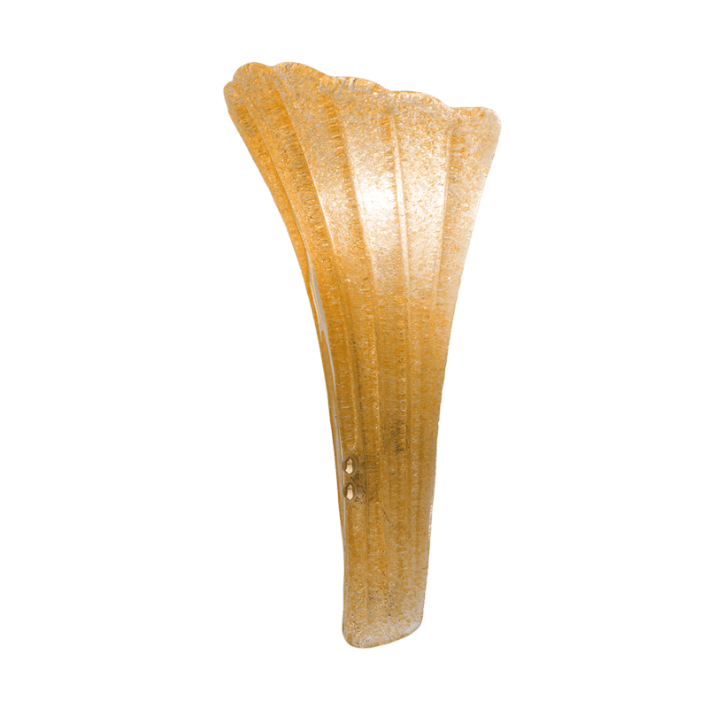 Kinkiet ze złotym szkłem, robionym ręcznie, to wyjątkowo elegancka lampa do pomieszczeń w stylu klasycznym. Lampa przyścienna oświetli boczne miejsca w pomieszczeniu, wydobędzie szczegóły wystroju i detale, zbuduje klimat. Sprawdzi się wszędzie tam, gdzie lampy wiszące centralnie i żyrandole nie dają odpowiedniej ilości światła. Ponadczasowa forma i styl oświetlenia. Włoskie szkło robione ręcznie w technologii piastry.