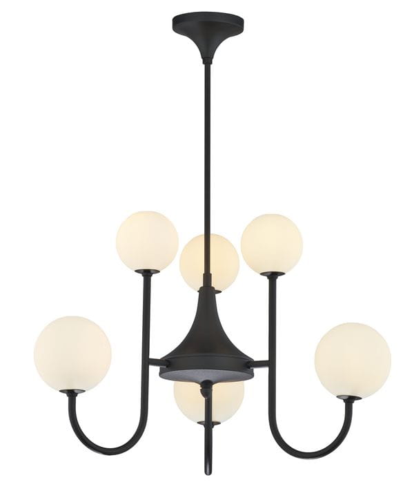 Żyrandol Silin, elegancka lampa w stylu modern classic. Sześć nowoczesne punkty światła, osłonięte mlecznymi kulami. Stelaż lampy klasyczny, metalowy, pięknie wykończony w kolorze czarnego matu. Lampa doskonale sprawdzi się w pomieszczeniach nowoczesnych, ale też angielskich, czy prowansalskich, doda im elegancji, zapewni przytulny nastrój.