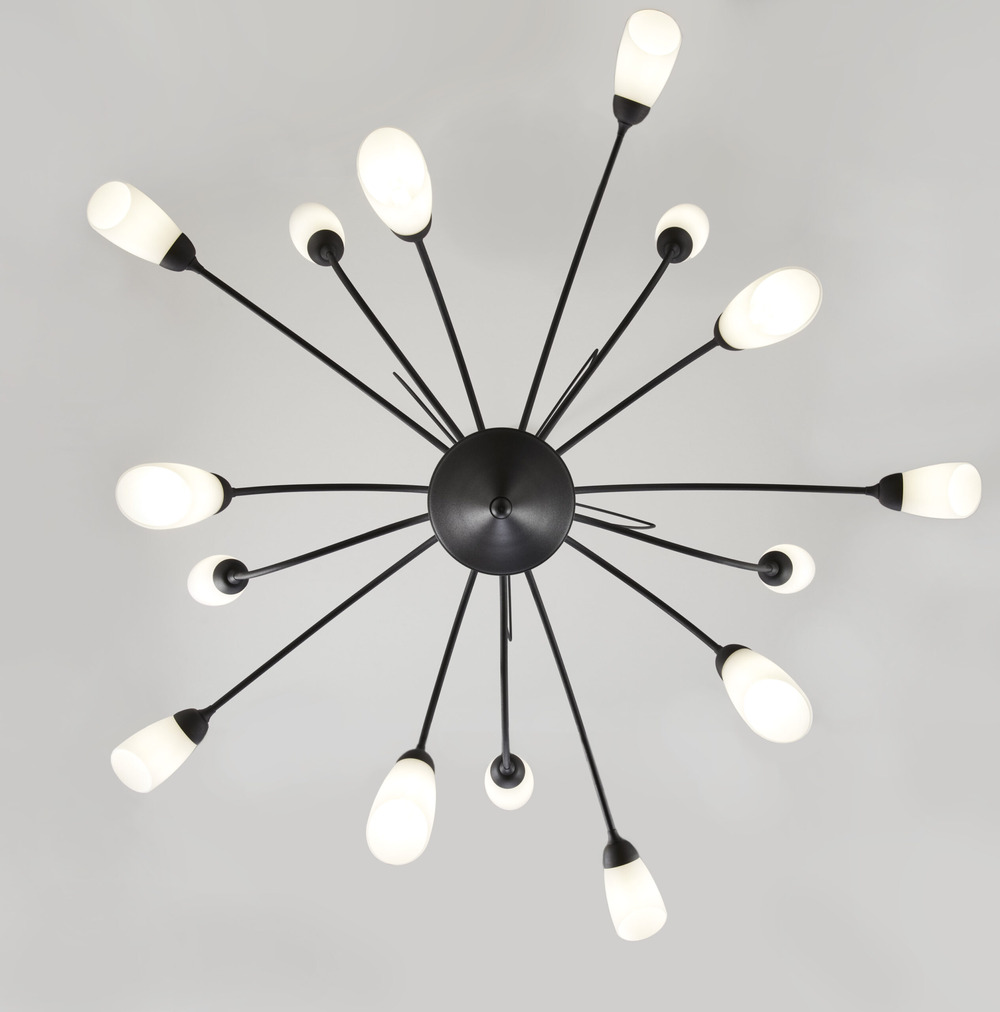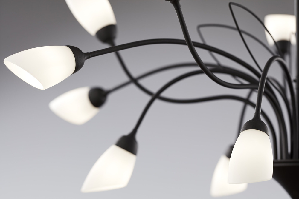 Nowoczesny żyrandol wiszący Gloria to propozycja dla osób, które cenią lekkość formy i unikalny design oświetlenia. Elegancki żyrandol z 10 lub 15 ramionami i stożkowymi kloszami ze szkła subtelnie rozprasza światło, tworząc przytulną atmosferę w salonie, sypialni lub stylowej jadalni.