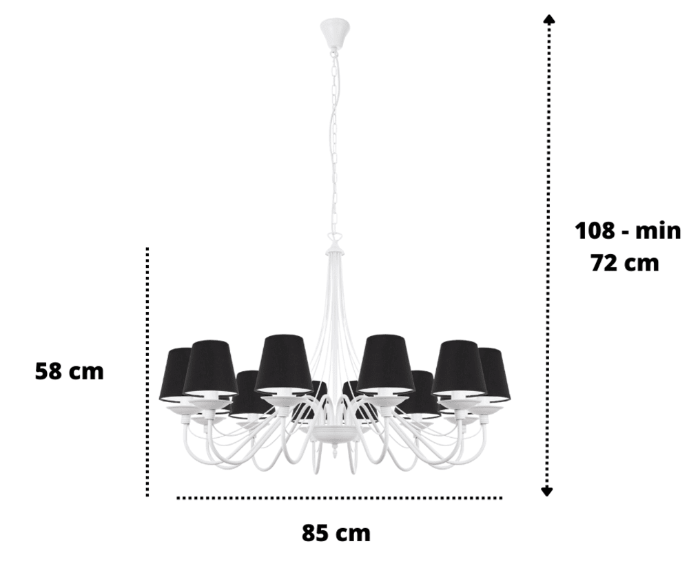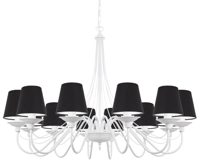 Jeżeli chcecie postawić na coś wyjątkowego, to klasyczny, efektowny żyrandol z abażurami w kolorze białego matu będzie idealnym wyborem. Kupując lampę wiszącą, stawiasz na ponadczasowy kształt i formę oświetlenia oraz otrzymujesz gwarancję jakości. Okazały, elegancki i stylowy żyrandol to znakomity pomysł na oświetlenie i ozdobę salonu. Ten duży żyrandol ma proporcjonalne abażury, które dodają lampie delikatności i zasłaniają żarówki, tak aby ich światło nie raziło oczu. Lampa ma 85 cm średnicy, a jej całkowitą długość możemy zmienić, dodając odpowiednią ilość ogniwek łańcucha. Santa jest częstym "gościem" w wysokich salonach, salach i pomieszczeniach hotelowych. Idealnie wkomponuje się w styl tradycyjny, klasyczny, prowansalski i shabby chic. Bardzo często też ze względu na swój ponadczasowy styl oświetla salony nowoczesne.