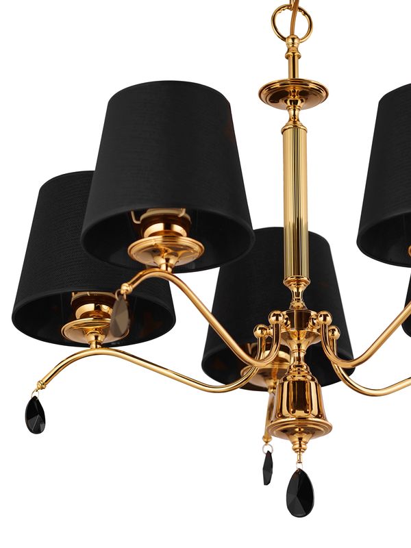 Żyrandol elegancki złoty Edida z czarnymi abażurami R21795