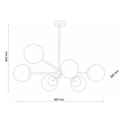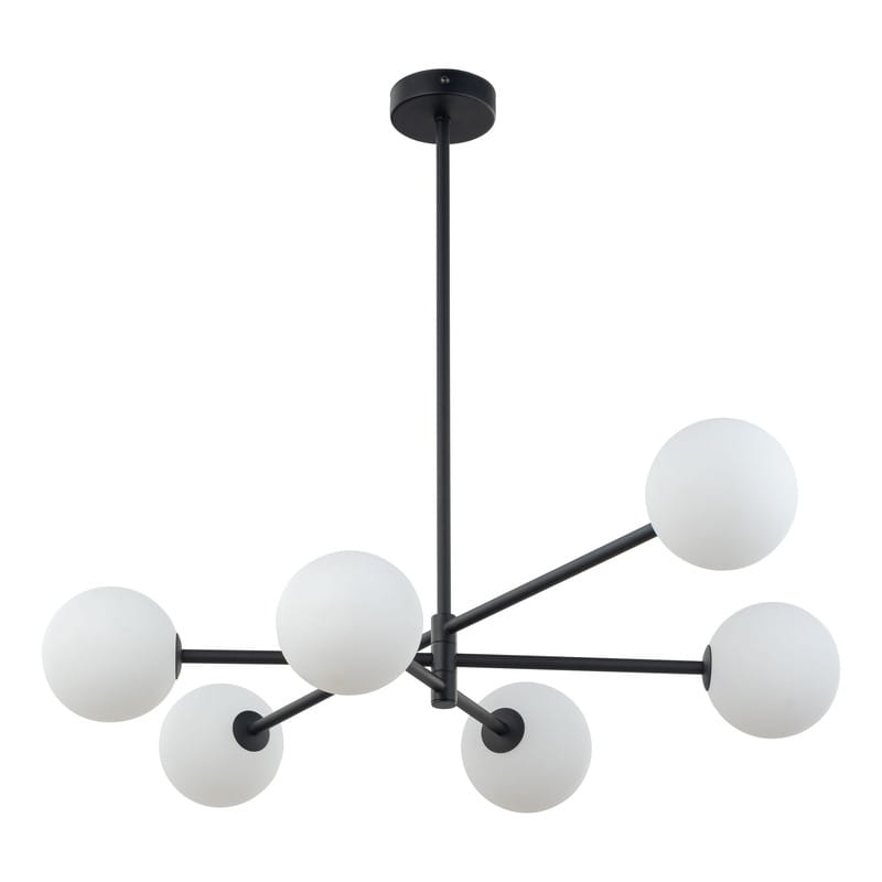 Czarny i nowoczesny żyrandol Syriusz to prosty i oryginalny stelaż. Prezentuje nowoczesny, nieco "kosmiczny" design z sześcioma punktami światła. Ta duża lampa na sufit, ma mlecznobiałe szklane kule o średnicy 12 cm. Oryginalna, dynamiczna forma lampy sprawia, że pasuje ona do wielu wnętrz i dodaje im wyjątkowego, futurystycznego charakteru. Salony, pokoje i jadalnie urządzone w stylu modern i nowoczesnym, to miejsce gdzie nasz Syriusz będzie się czuł najlepiej.