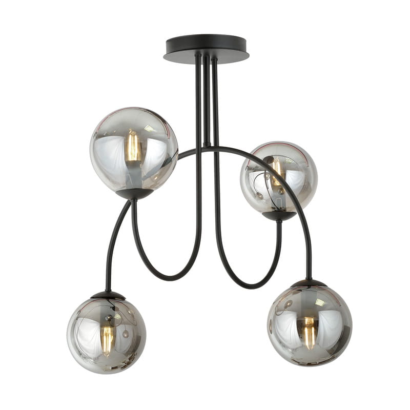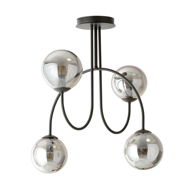 Czarny i nowoczesny żyrandol Aria to prosty i oryginalny stelaż. Prezentuje nowoczesny design z 4 punktami światła. Ta lampa na sufit do pokoju, ma grafitowe szklane kule o średnicy 14 cm. Oryginalna, dynamiczna forma lampy sprawia, że pasuje ona do wielu wnętrz i dodaje im wyjątkowego charakteru. Salony, pokoje i jadalnie urządzone w stylu modern i nowoczesnym, to miejsce gdzie nasza Aria będzie się czuła najlepiej.