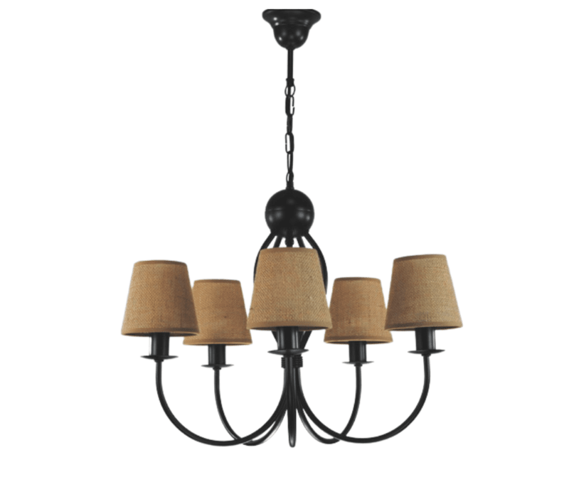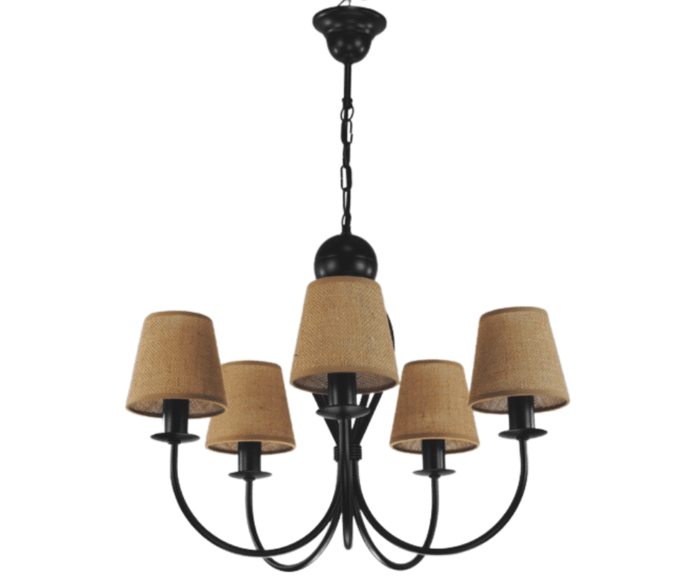 Żyrandol klasyczny Surim pięcioramienny w kolorze czarnym z abażurkami z juty, to bardzo ładna i ponadczasowa propozycja oprawy oświetleniowej. Jego forma i kształt sprawiają, że od lat cieszy się dużym zainteresowaniem kupujących. Proporcjonalne i ładne abażurki równomiernie rozpraszają światło żarówki. Świetnie sprawdzi się jako oświetlenie salonu i pokoju, ale również można go powiesić w jadalni i kuchni. Doskonale wkomponuje się w mieszkania o stylu klasycznym, tradycyjnym i eko. Lampę można samemu skrócić o 3 ogniwka łańcucha, obniżając jej wysokość o 10 cm. Cała lampa wraz z abażurkami powstaje w naszej firmie.