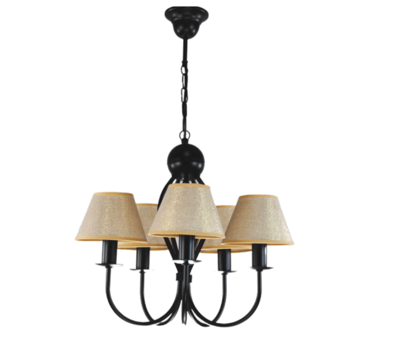 - żyrandol czarny z jasnobeżowymi abażurkami