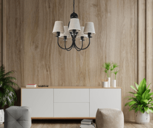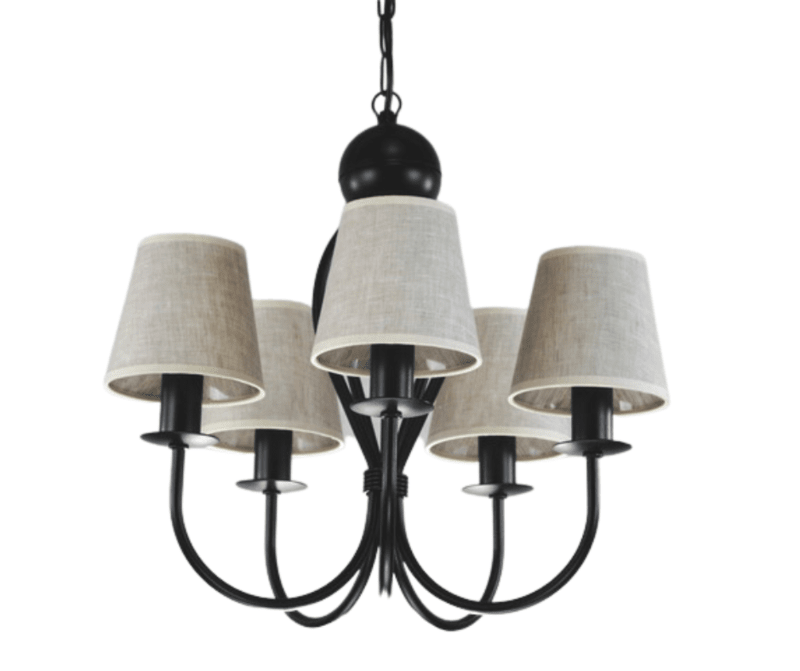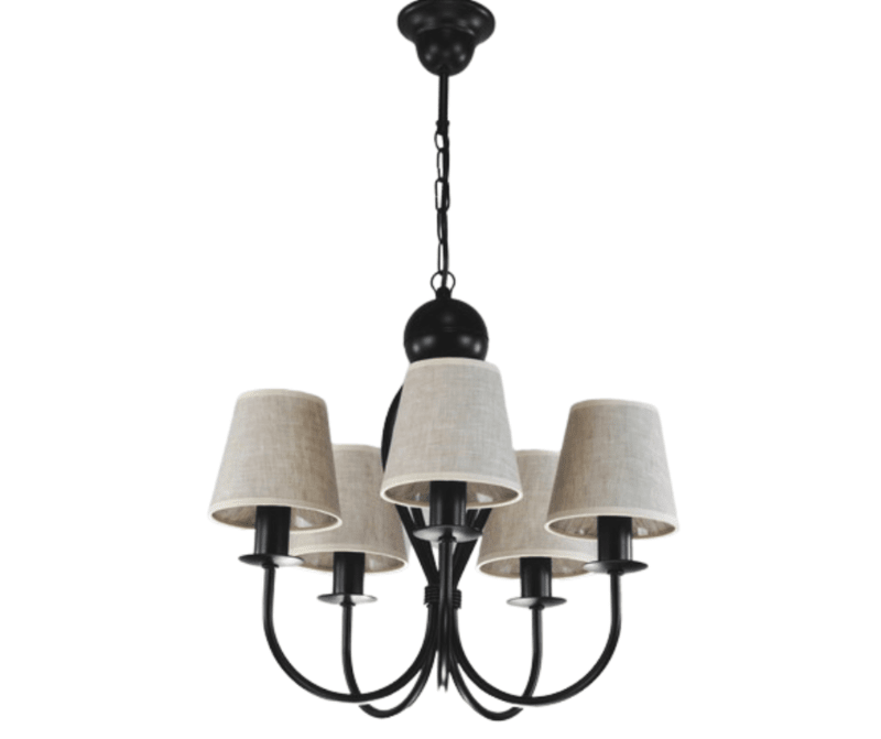 - żyrandol czarny z jasnobeżowymi abażurkami
